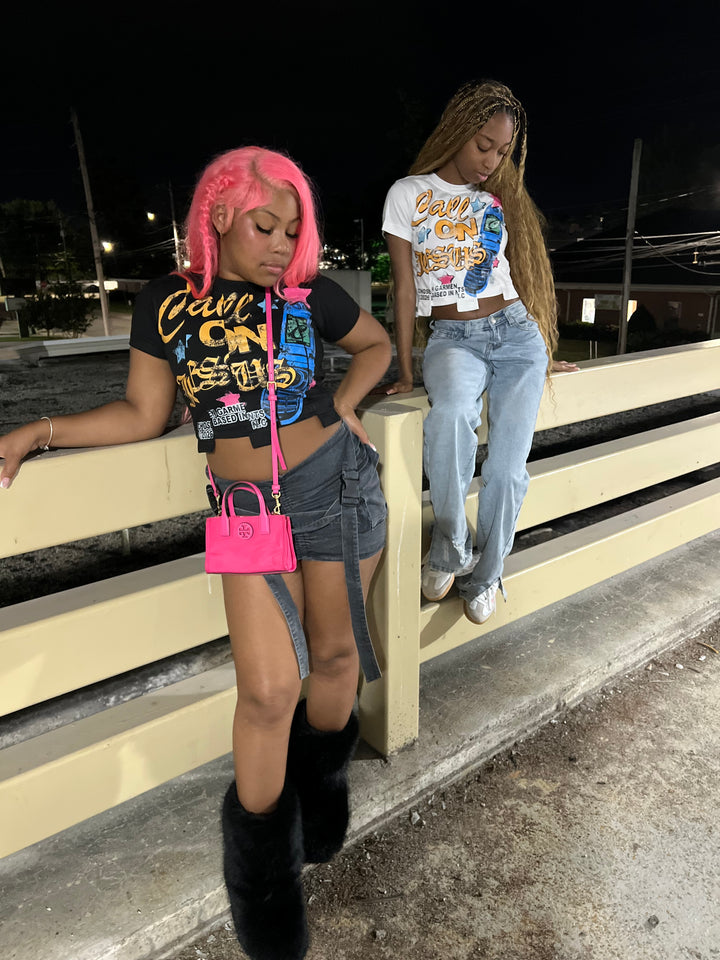 Call On Jesus Black Tee Cropped